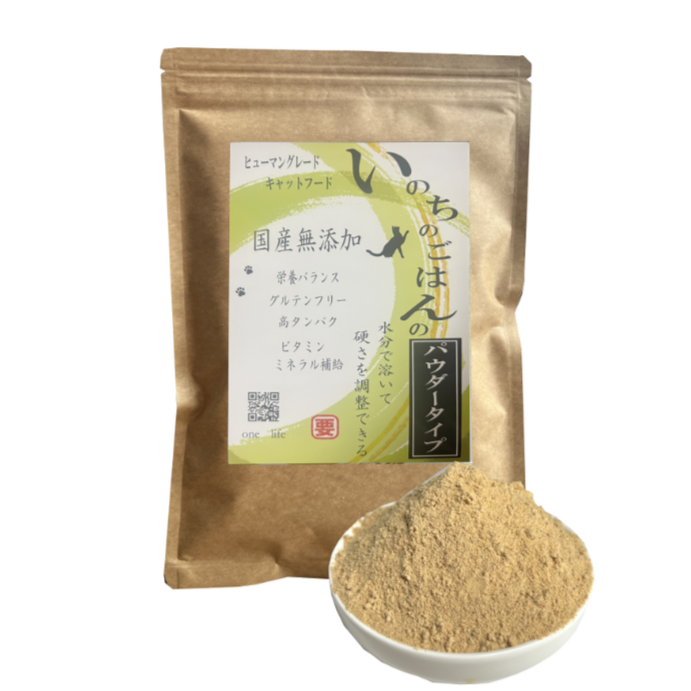 野菜、果物は、さつまいも、かぼちゃ、人参、りんご、キャベツ、大根、白菜、小松菜、また煮干しなど栄養たっぷり摂れる食材を多種類配合。 穀物にもこだわり、五穀(大麦、もちきび、もちあわ、アマサス、白ごま)を使用しております。