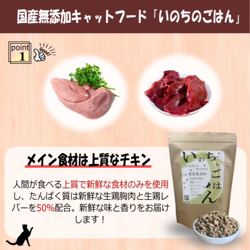 日々食べる日常食を健康をサポートする無添加の食事を摂ることによって、少しでもねこちゃん達の健康を内面から支え、可能な限り長く元気で一緒に過ごすことをコンセプトにお待ちしております!